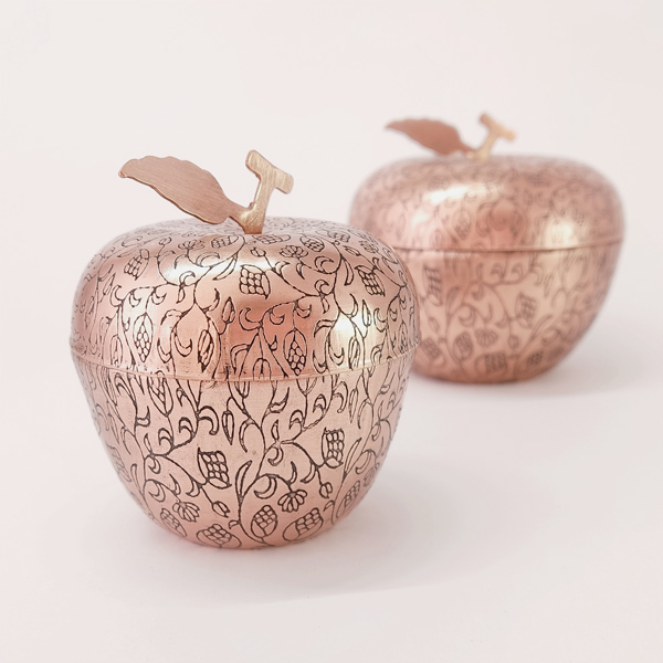 ست نوروز دوتکه طرح سیب مدل YNM_13، یک هدیه کوچک و بسیار دوستداشتنی برای عید نوروز است. این ست شامل دو عدد ظرف مسی طرح سیب با نقوش قلمزنی شده است که نماد سلامتی و شادابی هستند. این ظروف دوتکه برای قرار دادن سیب یا سنجد در سفره هفتسین ایدهآل بوده و به دلیل حجم مناسب، گزینهای عالی برای هدایای سازمانی با تیراژ بالا هستند.