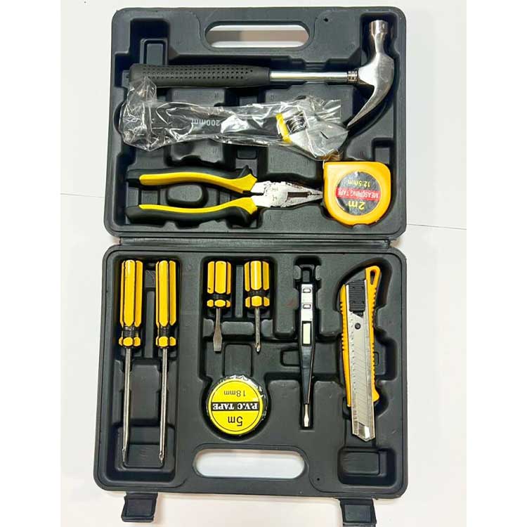 - **اجزای اصلی:** چکش، آچار فرانسه، انبردست/دمباریک، متر ۵ متری، نوار چسب برق، کاتر، پیچگوشتیهای بزرگ و دقیق.