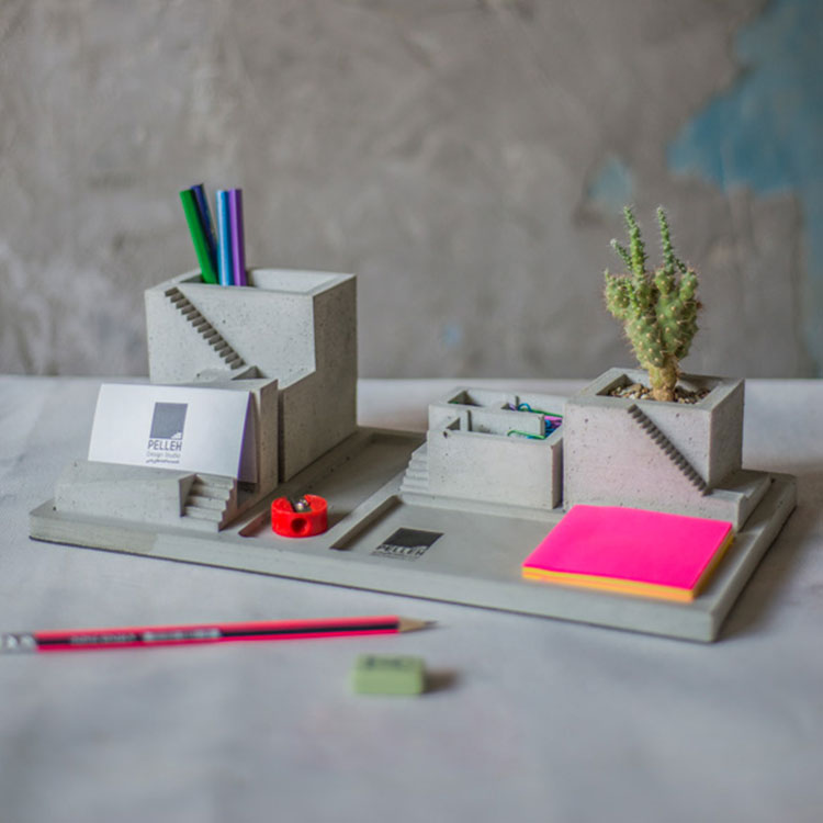 ست بتنی مدل CS_26 | ارگانایزر معماری جامع با طرح ماکت شهری، جاقلمی و گلدان – گیفتولند