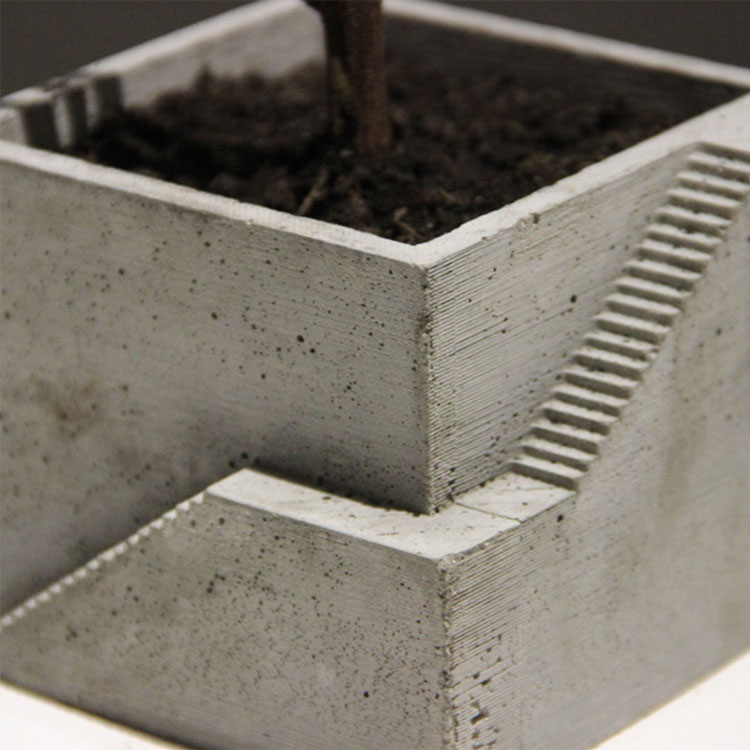 گلدان بتنی CS_28. گلدان/جاقلمی مکعبی با طراحی معماری کانسپچوال و طرح پلههای مینیاتوری بر روی بدنه. ایدهآل برای دفاتر مهندسی، معماری و ساختمانی.