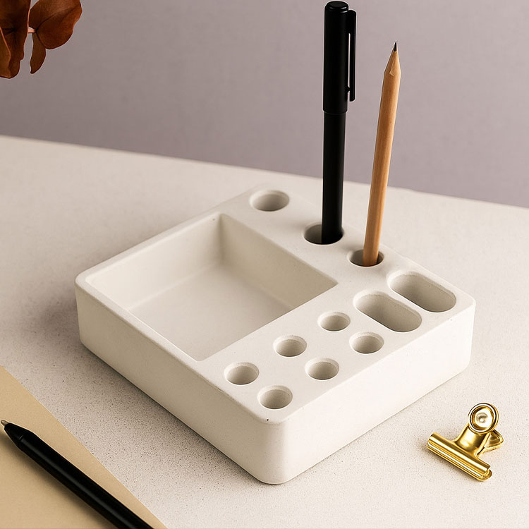 - **زیرفنجانی بتنی:** یک سینی دایرهای کوچک که به عنوان زیرلیوانی یا سینی برای قراردادن اکسسوریهای ریز عمل کرده و با حفظ تم کلی ست، لحظات استراحت کاربر را ارتقا میدهد.