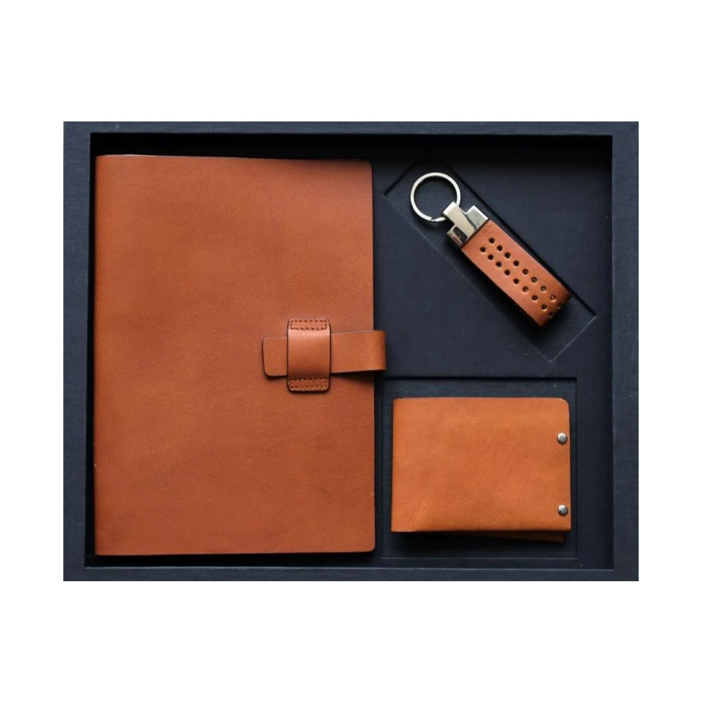 • **کمال در هماهنگی:** هر سه قلم (سررسید، جاکارتی، جاکلیدی) از لحاظ بافت چرم کاملاً یکسان هستند.