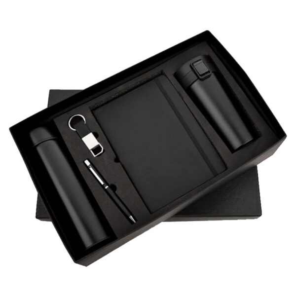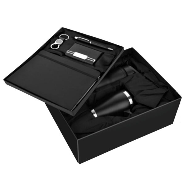 تمام اقلام در یک **جعبه هارد باکس** بسیار مجلل قرار میگیرند. این جعبه، خود با رنگ مشکی یا رنگ متضاد (مانند مشکی و نقرهای) طراحی میشود و تأثیر اولیه هدیه را در لحظه باز کردن چند برابر میکند.