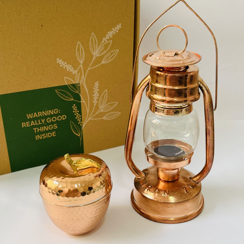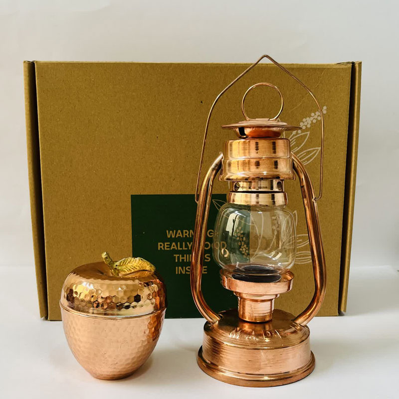 این ست دوتکه در یک **جعبه هارد باکس شکیل** با طراحی داخلی مناسب برای جایگیری مطمئن فانوس و ظرف سیب ارائه میشود. امکان درج **لوگو و پیام سازمانی** بر روی جعبه و نصب پلاک کوچک فلزی بر روی بدنه مسی فانوس یا ظرف سیب، پروسه برندینگ را به بهترین شکل تکمیل میکند.