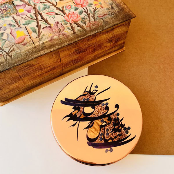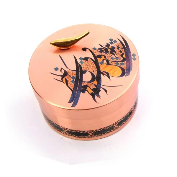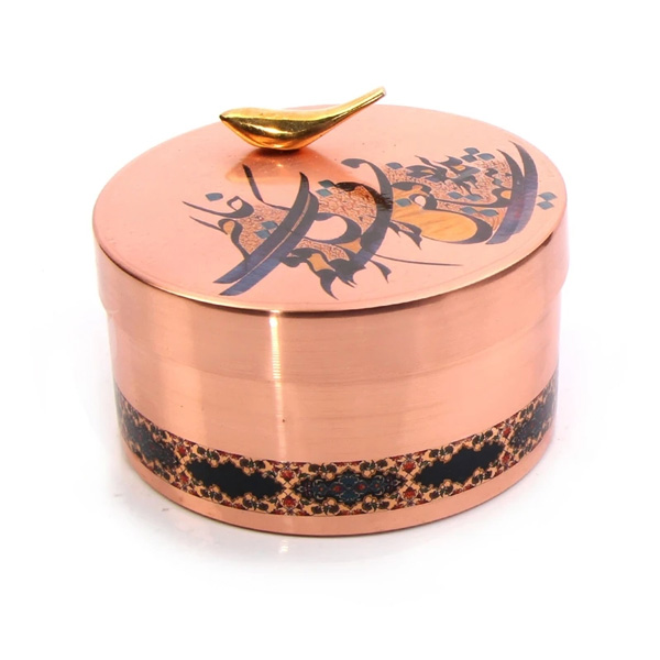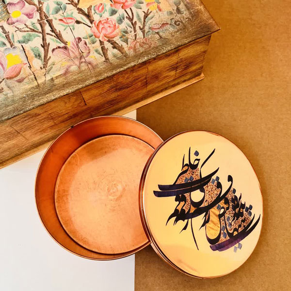 ویژگی اصلی این محصول، هنرنمایی روی درب آن است. خوشنویسی به کار رفته، نماد غنای فرهنگی و ادبی ایران است و تضاد رنگی زیبای خطوط تیره با پسزمینه درخشان مس، جلوهای مجلل ایجاد میکند. این درب هنری، ظرف را به یک المان دکوری مستقل تبدیل میکند.