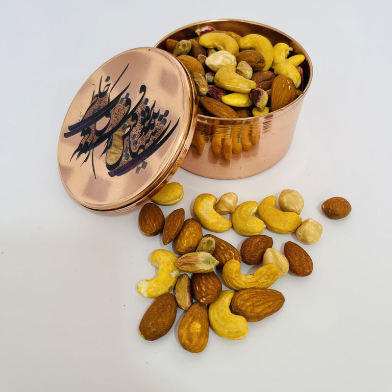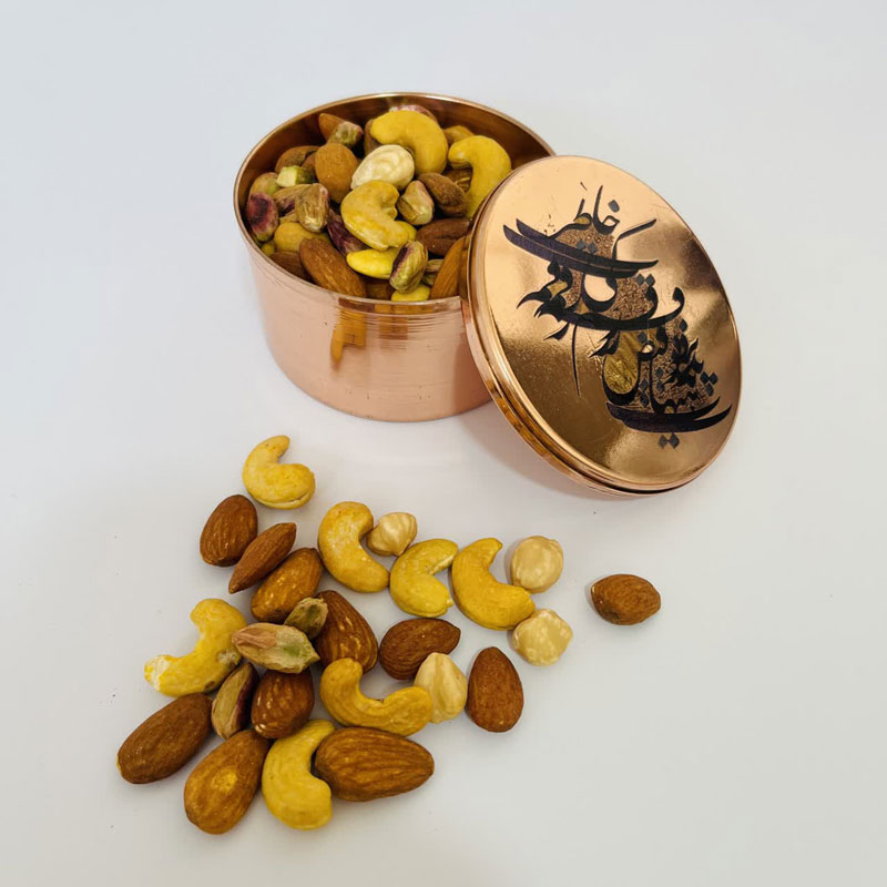 شکلات خوری مسی طرح نگاره مدل YNM_10، یک قطعه هنری کاربردی است که به دلیل طراحی ساده و استوانهای بدنه، بر شکوه نگاره هنری روی درب تمرکز کرده است. این محصول با ترکیب مس صیقلی و یک **نگاره خوشنویسی رنگین**، یک هدیه لوکس و فرهنگی محسوب میشود که میتواند به عنوان جعبه خاطرات، قندان یا ظرف پذیرایی ویژه مورد استفاده قرار گیرد. این ظرف، نشاندهنده حسن سلیقه و ارزشگذاری شما به هنر ایرانی است.