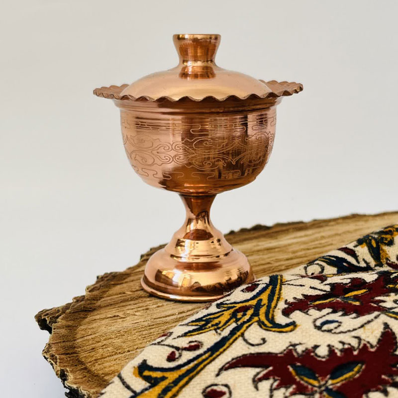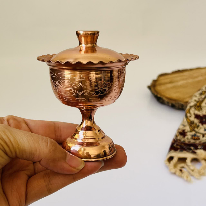 قندان/جام مسی مدل YNM_02، یک آیتم پذیرایی برجسته است که به دلیل طراحی پایهدار، به سادگی به نقطه کانونی میز تبدیل میشود. این محصول، با تلفیق هنر قلمزنی روی مس و فرم کلاسیک جامهای سنتی، یک هدیه سازمانی با ارزش هنری و کاربردی بالا است. جام YNM\_02 نشاندهنده حسن سلیقه و توجه سازمان شما به ظرافتهای اصیل ایرانی است.