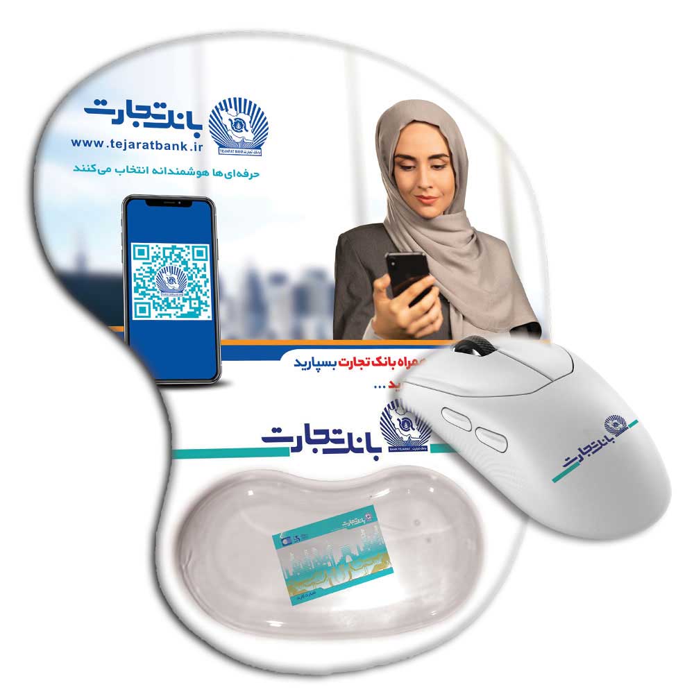 موس پد تبلیغاتی MD_12 (بانکی). بهترین راهکار برای قرار دادن QR Code و اطلاعات کلیدی خدمات بانکی روی میز مشتری. با طراحی ارگونومیک و تکیهگاه مچ ژلهای، یک هدیه کاربردی و حافظ سلامت ارائه دهید که حضور برند شما را تضمین میکند.