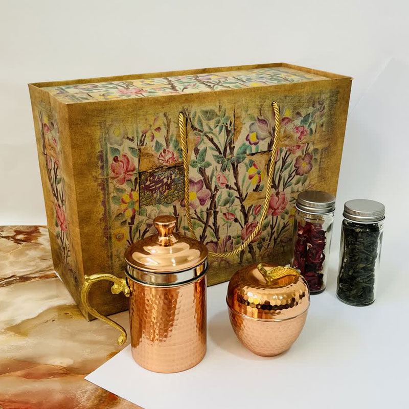 پک مسی طرح ناب مدل YNM_19، مجموعه‌ای ۴ تکه از ظروف مسی و دمنوش‌های معطر است. این ست شامل یک قوری مسی کوچک چکشی، قندان مسی طرح سیب و دو شیشه دمنوش مرغوب (مانند گل محمدی و چای) می‌باشد. بسته‌بندی سنتی و زیبای این پک، آن را به یک هدیه گرم، اصیل و بسیار خاص تبدیل کرده است.
