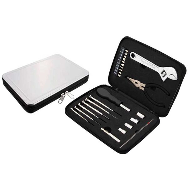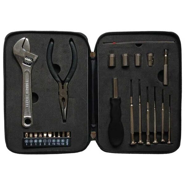 ست ابزار مسافرتی TB-36 یک کیت تخصصی و بسیار شیک است که برای تعمیرات مکانیکی سبک و کارهای دقیق الکترونیکی طراحی شده است. این مجموعه در یک کیف زیپی با رویه نقرهای/فلزی فشرده عرضه شده و شامل ابزارهای کلیدی مانند آچار فرانسه، انبردست دمباریک و مجموعه کامل پیچگوشتیهای ساعتی است. TB-36 یک ابزار ایدهآل برای سفر، خودرو، تعمیرات دقیق موبایل و کامپیوتر است.