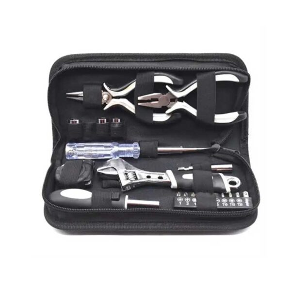 ست ابزار قابل حمل TB-43 یک کیت ضروری و فشرده است که برای نگهداری در خودرو، کیف سفر یا کارهای عمومی سریع طراحی شده است. این مجموعه در یک کیف زیپی مشکی با ابعاد کوچک و سازماندهی داخلی عالی عرضه شده و شامل ابزارهای کلیدی مانند آچار فرانسه، انبردست، فازمتر شفاف و ست کامل سریهای پیچگوشتی و بکس است. TB-43 یک ابزار ایدهآل برای سفر و استفاده روزمره (EDC) است.